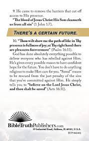 10. “Thou wilt show me the path of life: in Thy presence is fullness of joy; at Thy right hand there are pleasures forevermore” (Psalm 16:11).